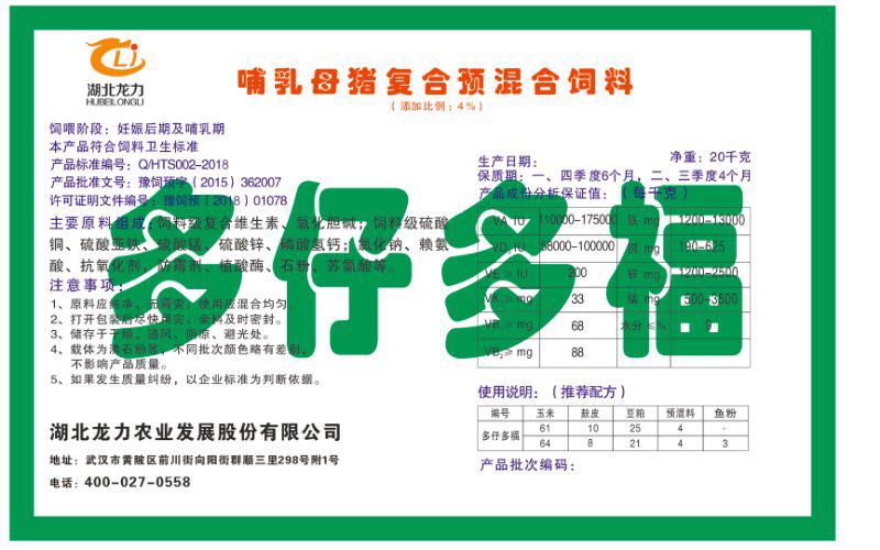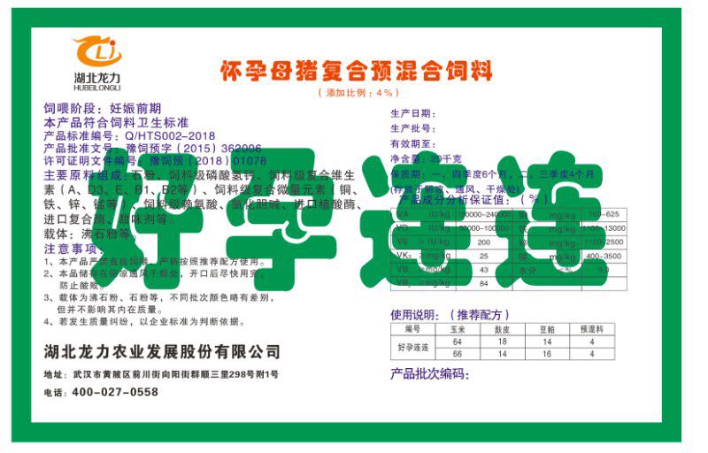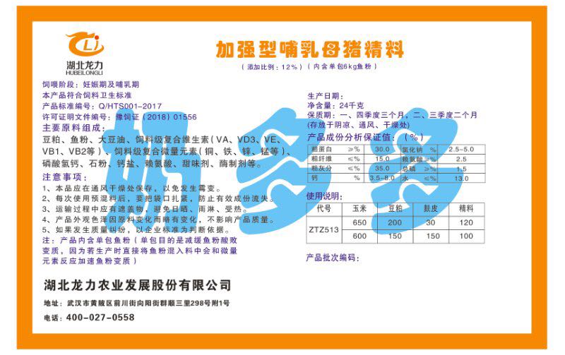 湖北龍力農(nóng)業(yè)發(fā)展股份有限公司坐落于武漢市黃陂區(qū)前川街向陽(yáng)街群順三里298號(hào)附1號(hào)。公司成立于2014年6月,公司自成立以來把“創(chuàng)全球最大養(yǎng)豬綜合服務(wù)”為企業(yè)愿景。致力于打造教保料品牌”作為公司發(fā)展的明確目標(biāo)。公司一直致力于豬營(yíng)養(yǎng)的研究和開發(fā),積極與國(guó)內(nèi)外高校和科研機(jī)構(gòu)合作,推廣養(yǎng)豬技術(shù)、動(dòng)物營(yíng)養(yǎng)新概念,向世界農(nóng)牧企業(yè)學(xué)習(xí)與合作。公司采用國(guó)內(nèi)先進(jìn)的生產(chǎn)工藝,選擇高精度電子配料秤,高均勻度、無殘留混合機(jī)等先進(jìn)設(shè)備....